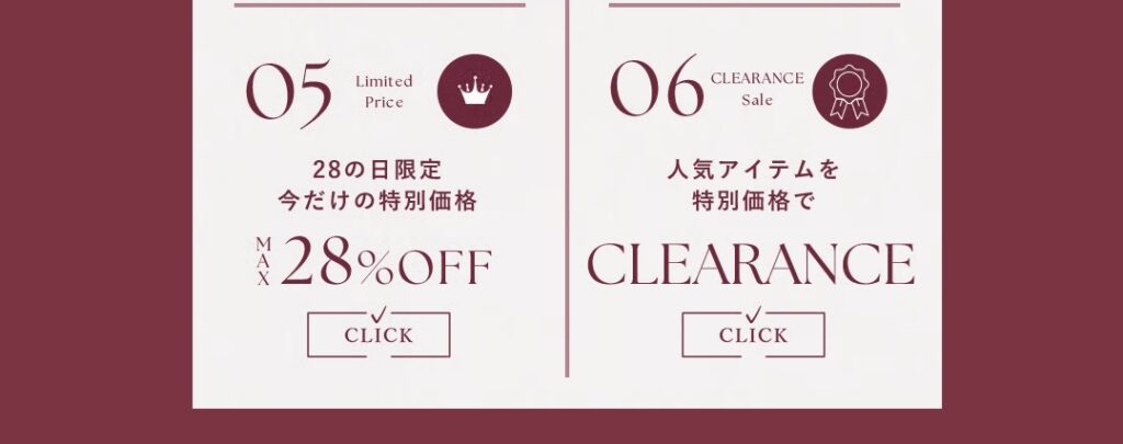 - 人気アイテムを特別価格でCLEARANCE